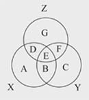 Suppose circles X, Y and Z represent persons who can speak Tamil, Hindi and Gujarati respectively.