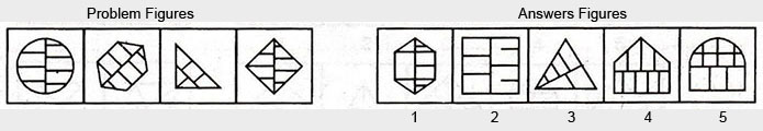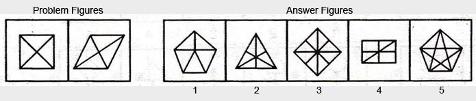 In Type 2 of classification (Questions from 1 to 15), there are four un-numbered figures followed by five figures marked as 1, 2, 3, 4, and 5. The four un-numbered figures are alike in a certain manner and forming a Problem set while the numbered figures form the Answer set and you have to choose such figure that is similar to the Problem figures.
