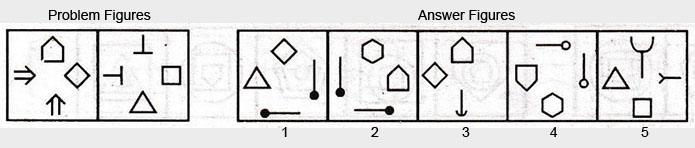 In Type 3 of classification (Questions from 16 to 40), there are two problem figures followed by five Answer figures marked as 1, 2, 3, 4, and 5. The two Problem figures have some common characteristics. You have to choose such Answer figure that is having similar characteristics of Problem figures.