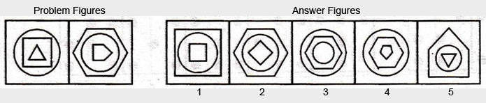 In Type 3 of classification (Questions from 16 to 40), there are two problem figures followed by five Answer figures marked as 1, 2, 3, 4, and 5. The two Problem figures have some common characteristics. You have to choose such Answer figure that is having similar characteristics of Problem figures.