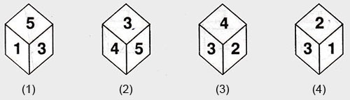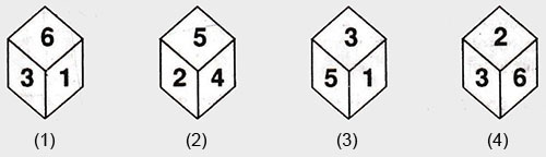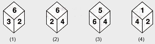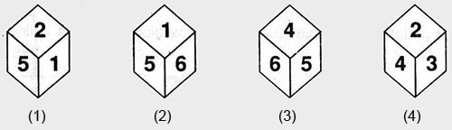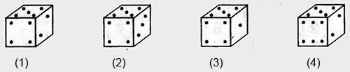 If the total number of dots on opposite fces of a cubical block is always 7 then find the figure which is correct?