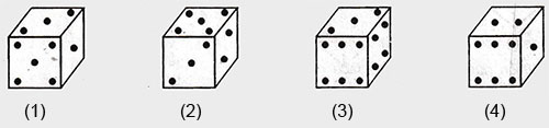 If the total number of dots on opposite side of a cubical block is always 7, then find the figure which is correct?