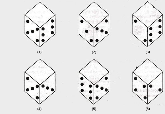 In questions (68-71), Six dice with their upper faces erased are given as below: