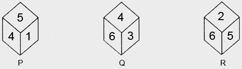 From questions (72-76), Observing the positions of three dices marked as P, Q and R, answer the following questions: