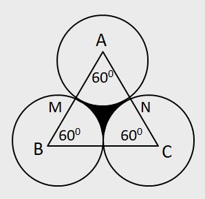 In this question, the area common to all circles and triangle = sum of the area of three sectors AMN, BML and CLN =