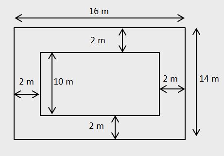 If a path all around the inside of a rectangular park 'y'm x 'z' metre occupies 'A' sq m, then the width of the path is given by