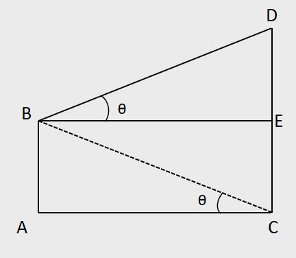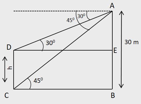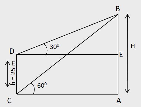 From the top and bottom of a building of height 'm' units, the angles of elevation of the top of a tower are θ1 and θ2 respectively, then the,