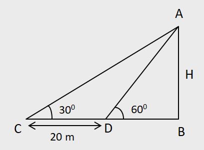 Note: The angle of elevation of a lampost changes from θ1 to θ2, when a man walks towards it. If the height of the lampost is H metres, then the distance travelled by man is given by