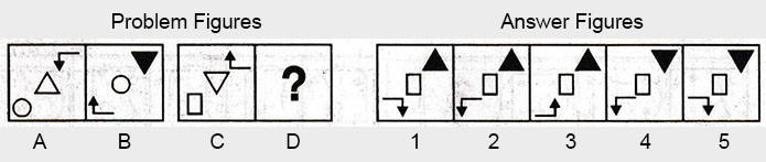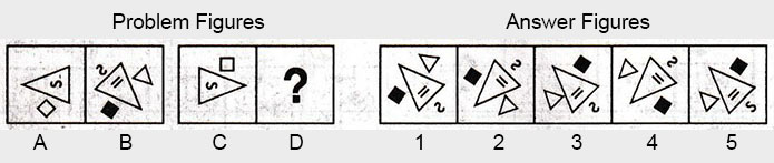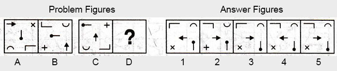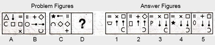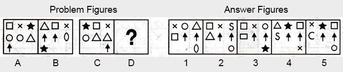 the Problem figures followed by five other figures marked 1, 2, 3, 4 and 5 called the Answer