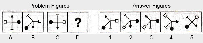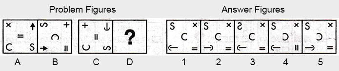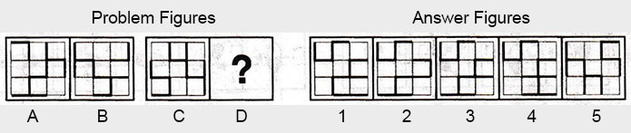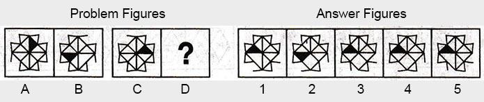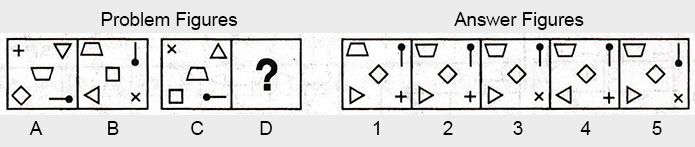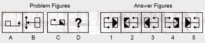 the Problem figures followed by five other figures marked 1, 2, 3, 4 and 5 called the Answer