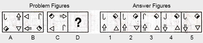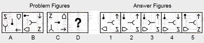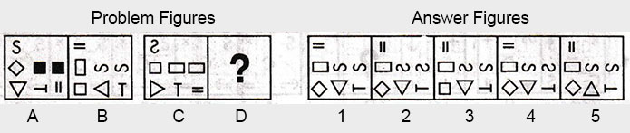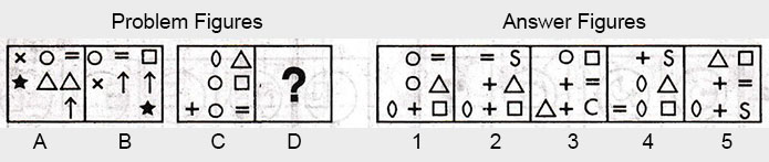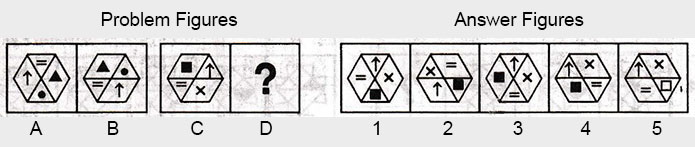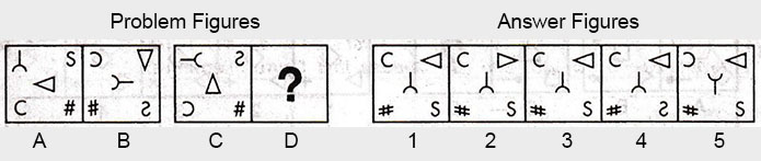 the Problem figures followed by five other figures marked 1, 2, 3, 4 and 5 called the Answer
