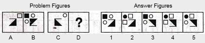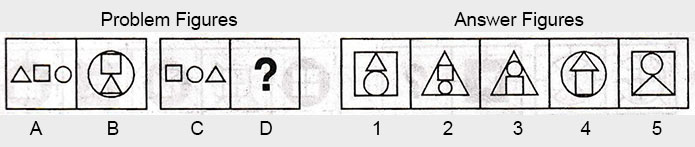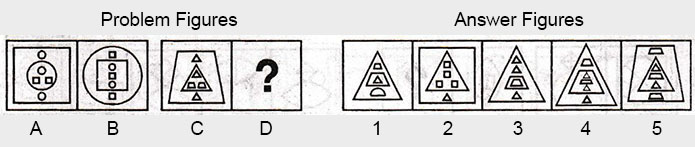 the Problem figures followed by five other figures marked 1, 2, 3, 4 and 5 called the Answer