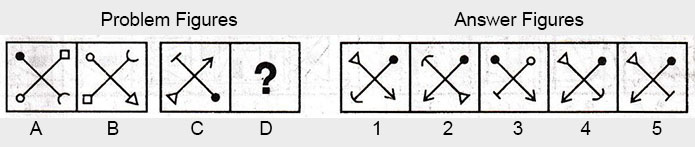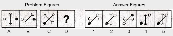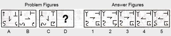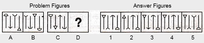 the Problem figures followed by five other figures marked 1, 2, 3, 4 and 5 called the Answer