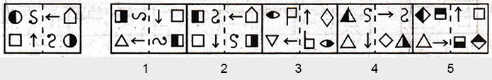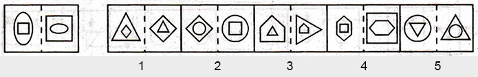 Each of the following questions consists of a related pair of figures followed by five other pair figures marked 1, 2, 3, 4 and 5. Select the pair that has a relationship similar to that in the original pair.
